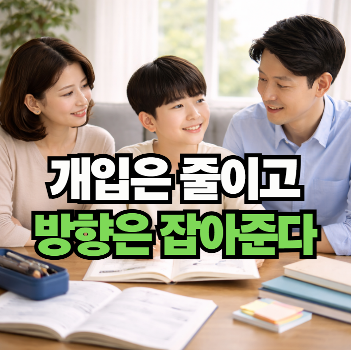 부모의 공부 개입은 성적이 아니라 목표·방법·리듬·감정·책임의 지점에서 이루어질 때 가장 효과적입니다.